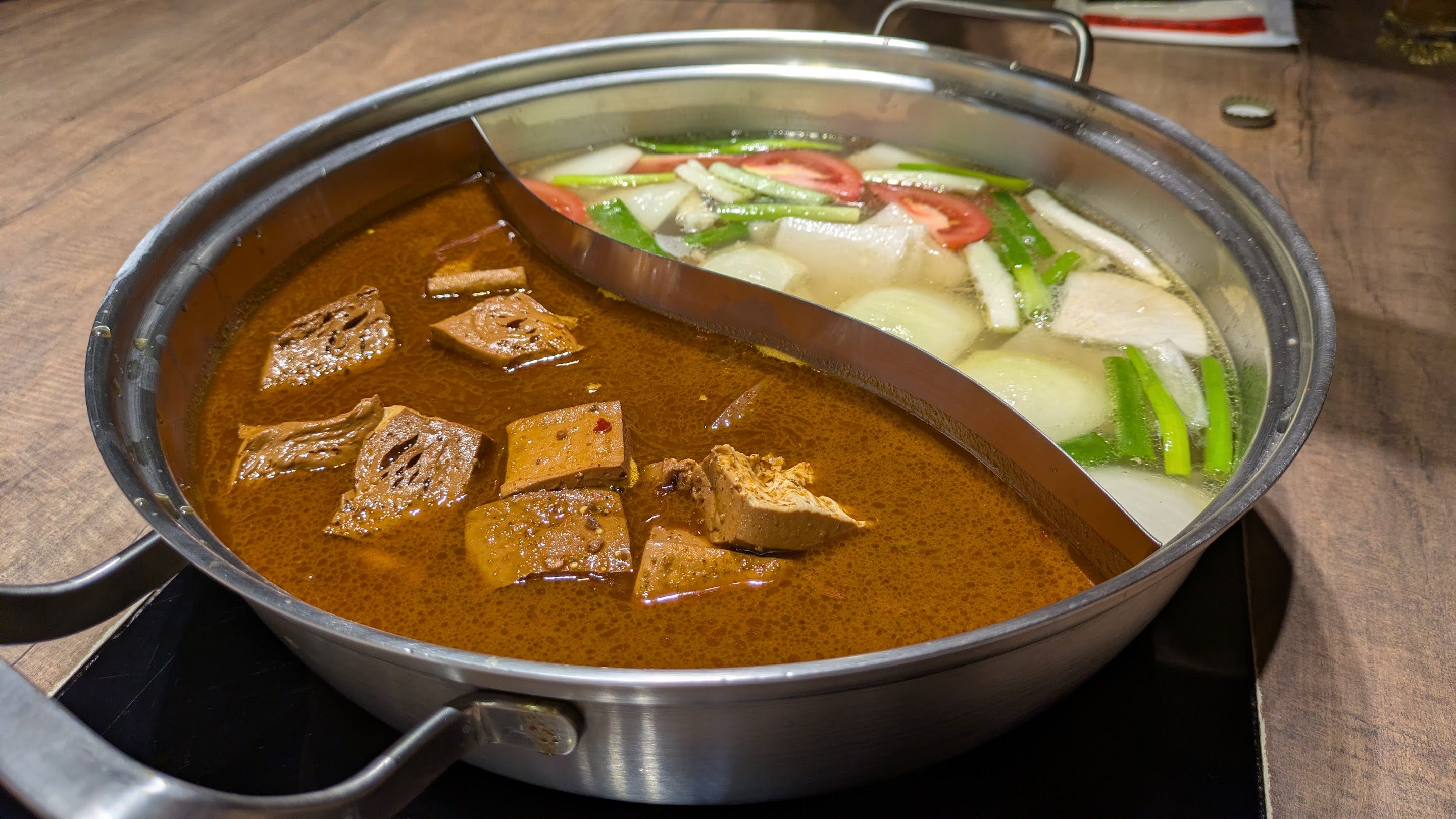 日本語ができるスタッフの方がいるので、おすすめされるがままに注文を。お肉は珍しいところだと筋がついた牛肉がありました。歯ごたえがあっておいしかった。あと、スイセンっていう台灣の野菜もシャキシャキで面白い食感で、スープはさすが台灣というぐらいスパイシーな感じ。けど、辛いだけじゃなく、いろんな香辛料が入ってるなーという感じでした。めちゃめちゃうまく、ビールも18という賞味期限18時間のビールもあってとてもいいお店だった。